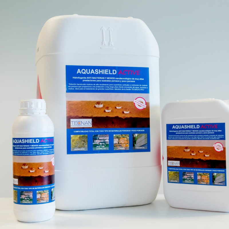 O composto ativo que produz a hidrorepelência são nanopartículas cerâmicas dispersas em um meio orgânico (isopropanol), pelo que o AQUASHIELD ACTIVE é compatível com qualquer substrato e elemento poroso.