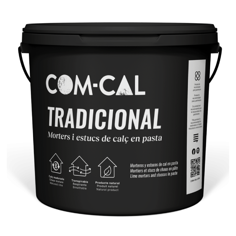 Marmorino COM-CAL Tradicional é um produto natural composto por cal aérea natural CL90, agregados selecionados e pigmentos inorgânicos. Este produto é comercializado na cor branca ou pigmentado com pigmentos naturais para proporcionar diferentes cores desejadas. Também está disponível a pigmentação personalizada.